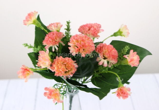 Bardzo ładny bukiecik z drobnymi goździkami. Bukiet posiada 5 gałązek, wys. 33 cm. Cena dotyczy 1 szt bukietu.