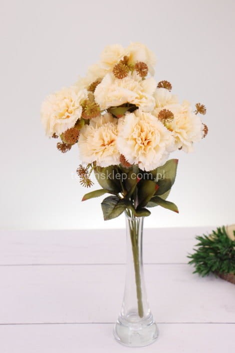 Kwiaty gęste, listki można suwać na łodyżkach. Piękna gotowa dekoracja do wazonu.