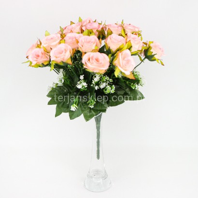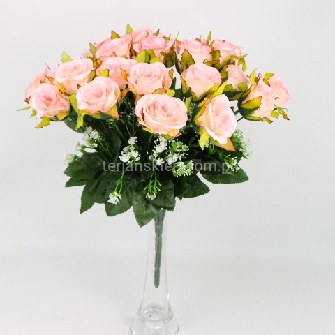 Całkowita wysokość bukietu to 38 cm. Wymiary główki róży: h = 5 cm, a średnica 6 cm.