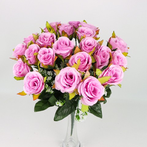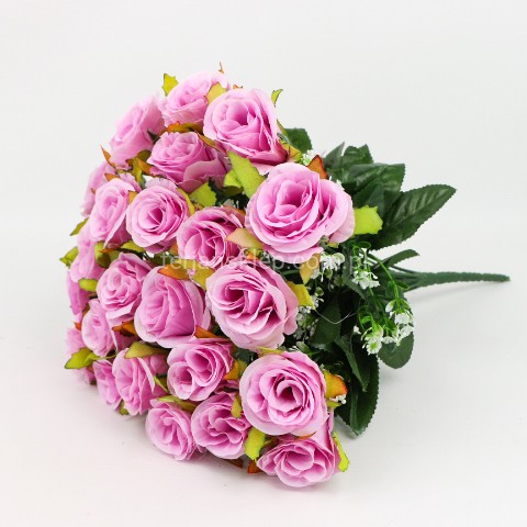 Całkowita wysokość bukietu to 38 cm. Wymiary główki róży: h = 5 cm, a średnica 6 cm.