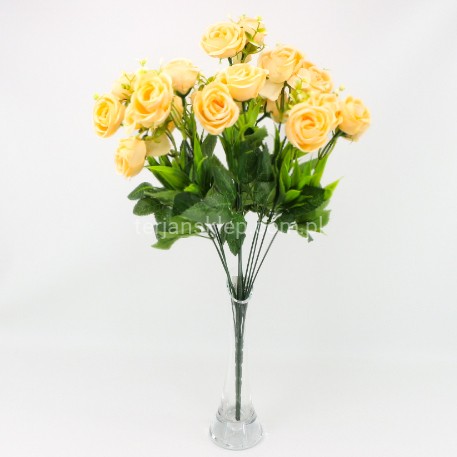 Duży i gęsty bukiet róż z dodatkami.