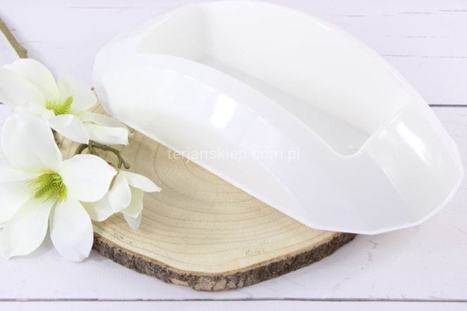 Doniczka plastikowa - idealna jako baza do kompozycji nagrobnych. Wymiary wewnętrzne (np. na gąbkę): 10 x 22 cm. Wymiary zewn. 19 x 35 cm, wysokość 8,5 cm. Cena dotyczy 1 sztuki.