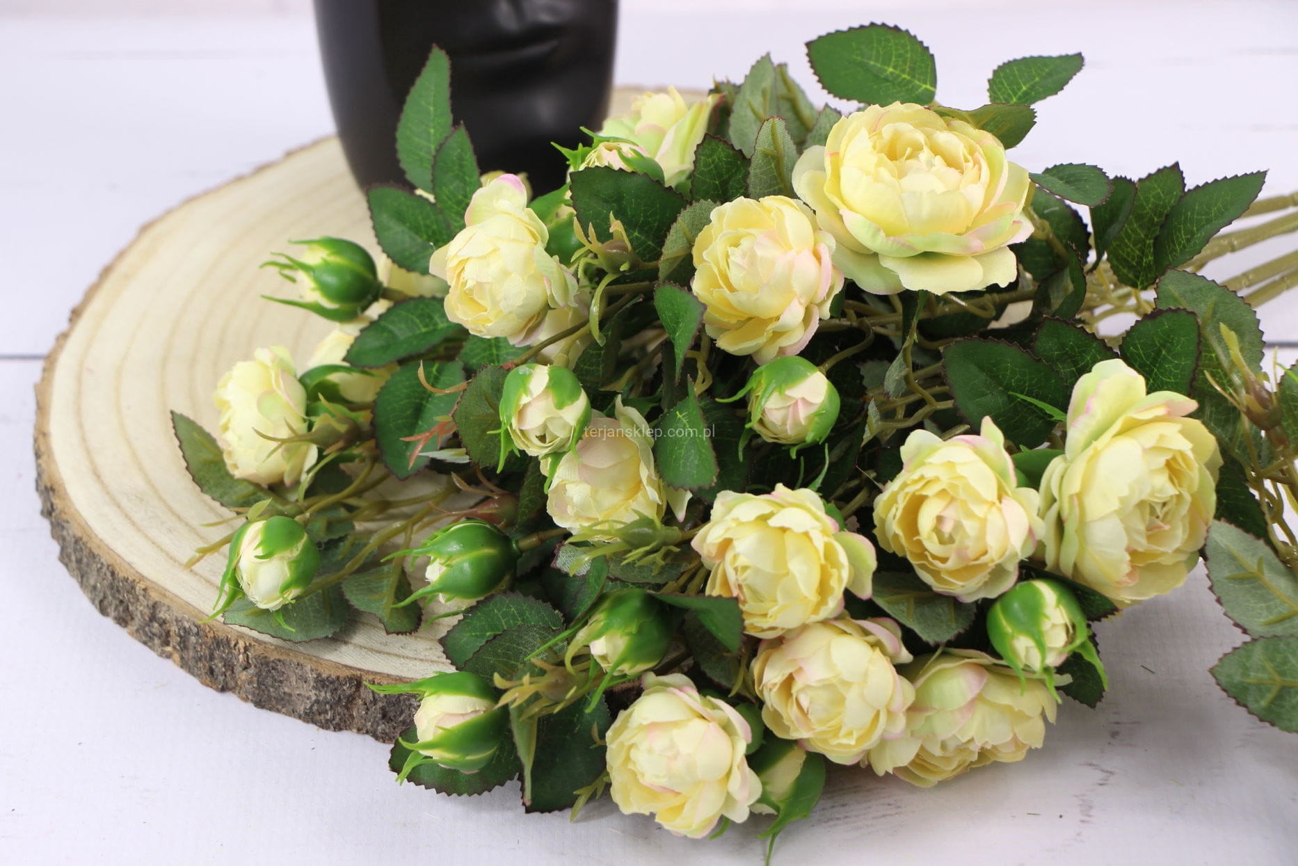 Prześliczna i urocza gałązka dzikiej róży z pięknymi kwiatami o różnej wielkości.