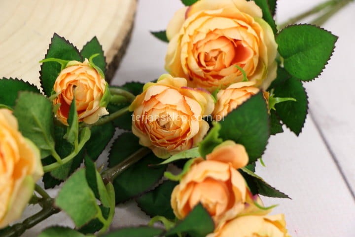 Płatki kwiatów wykonane są z delikatnej, matowej satyny.
