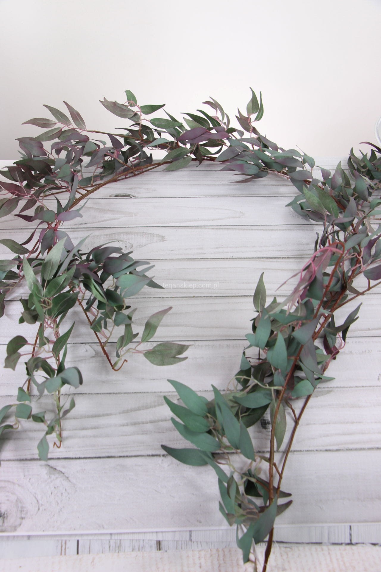 Bardzo ładna girlanda z gałązkami i liśćmi ruskusu. Girlanda na całej długości posiada boczne gałązki. Długość girlandy to 180 cm. Ładny, naturalny wygląd liści. Cena za 1 sztukę.