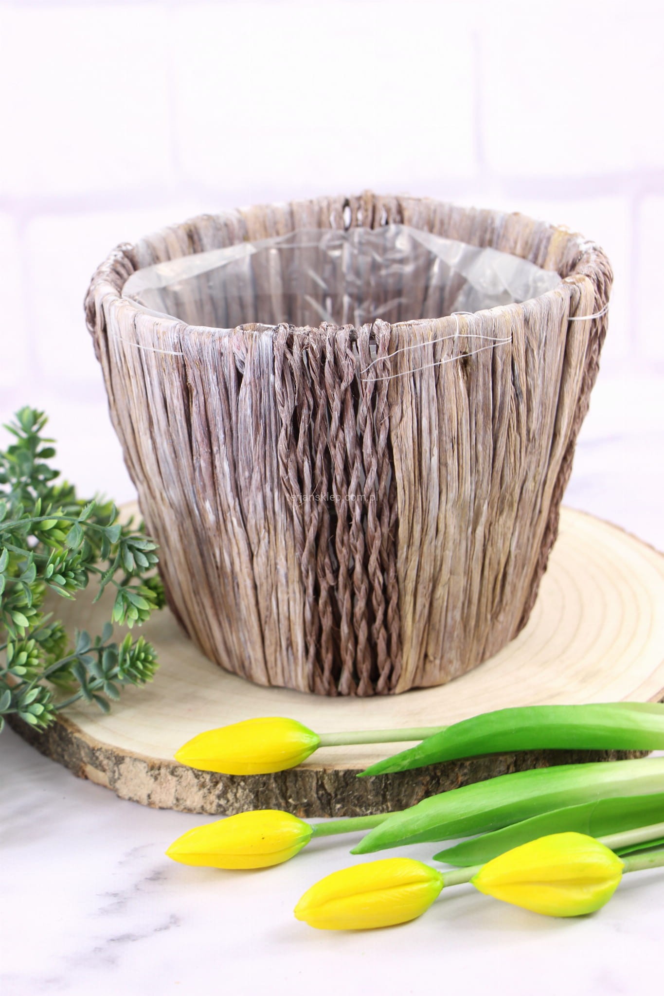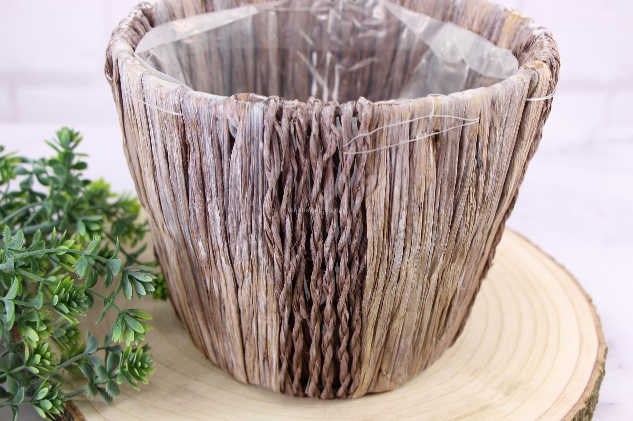 Piękna i w stylu EKO. Może służyć jako wazon do sztucznych kwiatów, osłonka na doniczkę albo jako flower box.