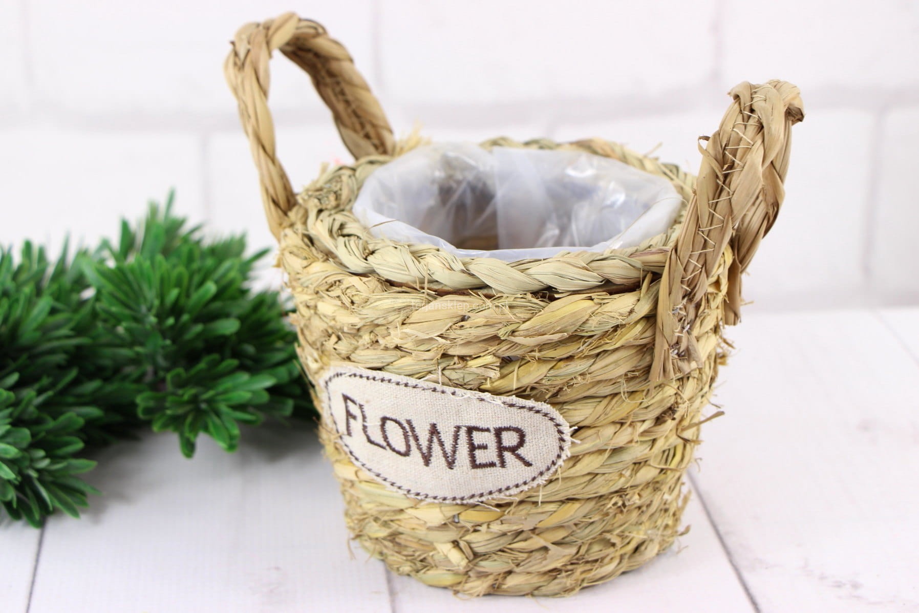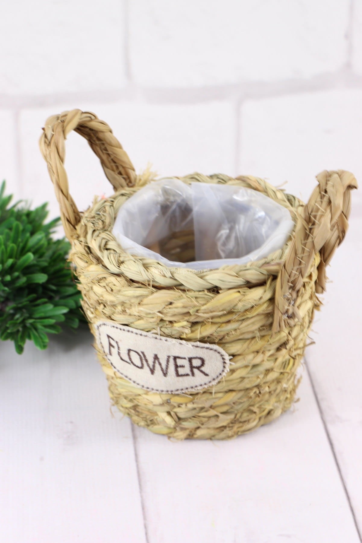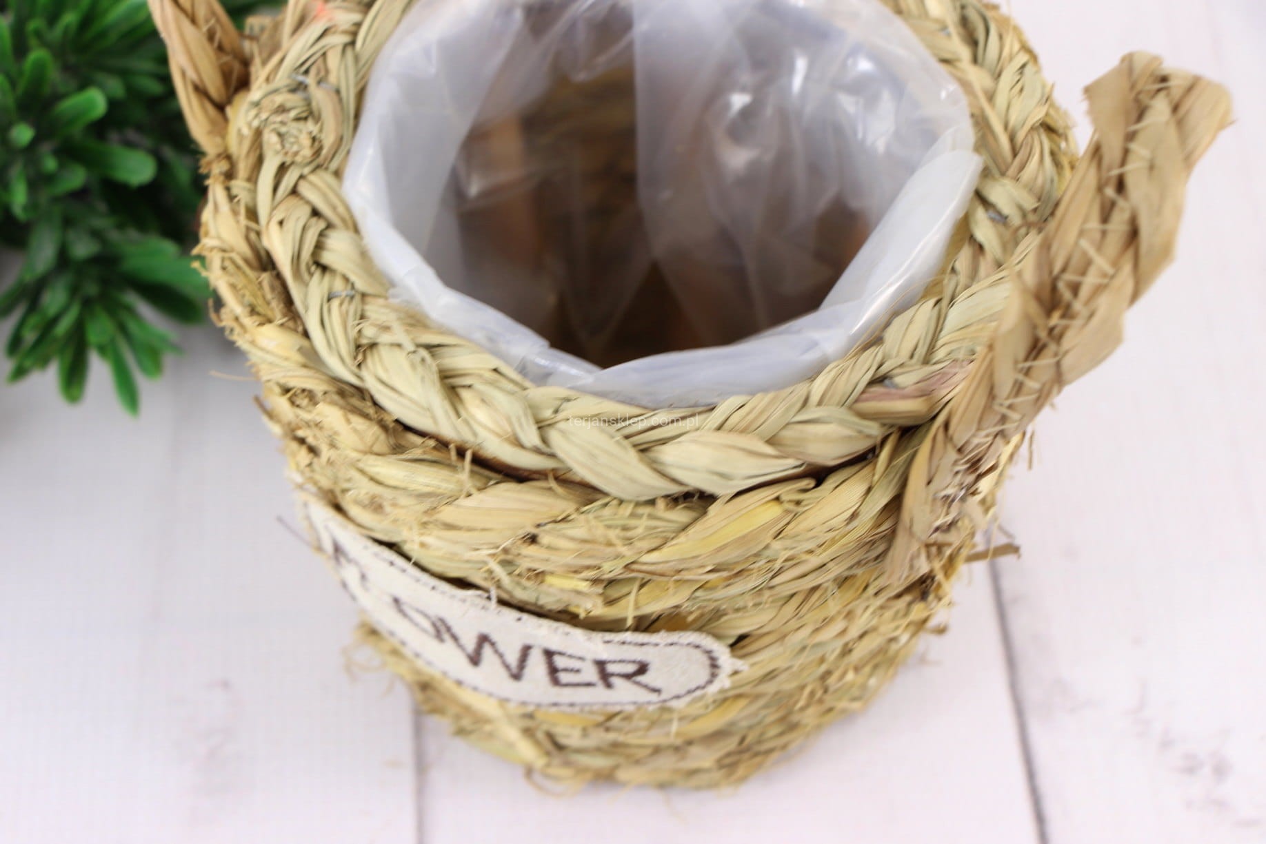 Osłonka / naczynie, wściełane folią. Wykonana z trawy morskiej. Idealna do kompozycji, a także do wstawienia doniczki z kwiatami lub posadzenia kwiatów na wiosnę.