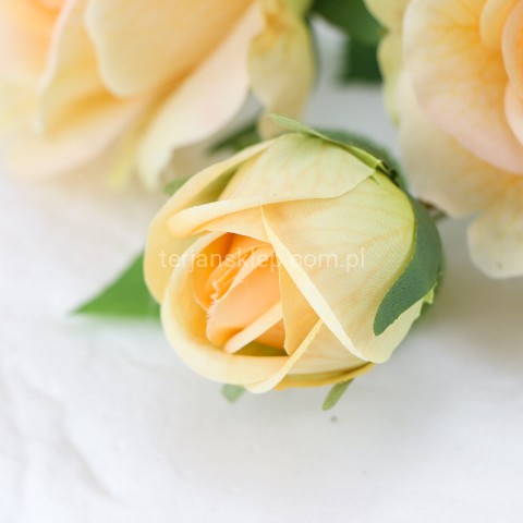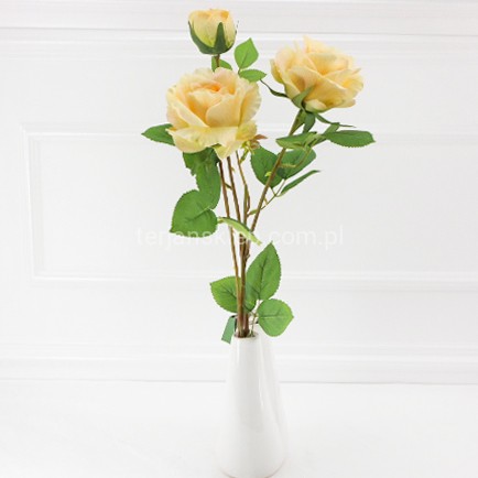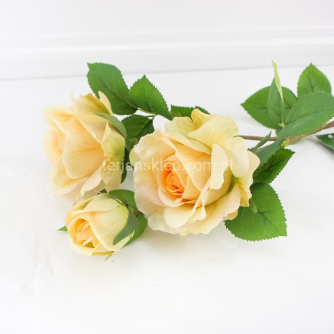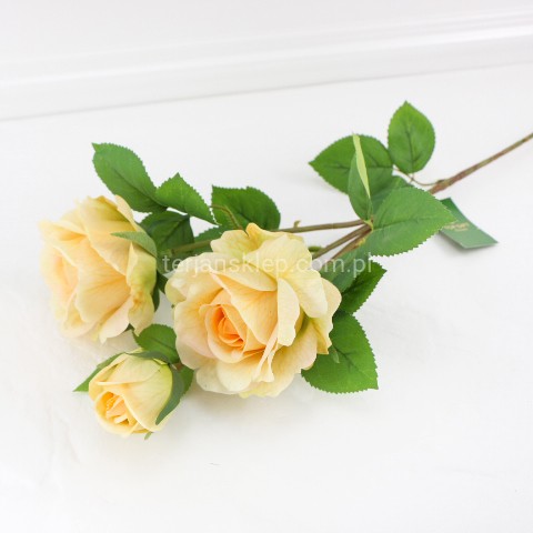 Gałązka róży z trzema kwiatami (każdy w innej fazie rozkwitu). Bardzo naturalny efekt!