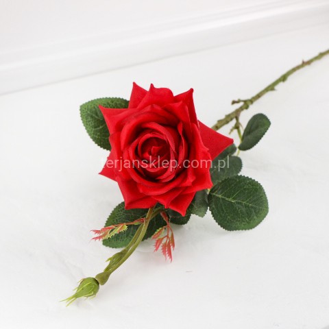 Róża gałązkowa z ładnymi liśćmi i pączkiem. Idealna do wazonu!