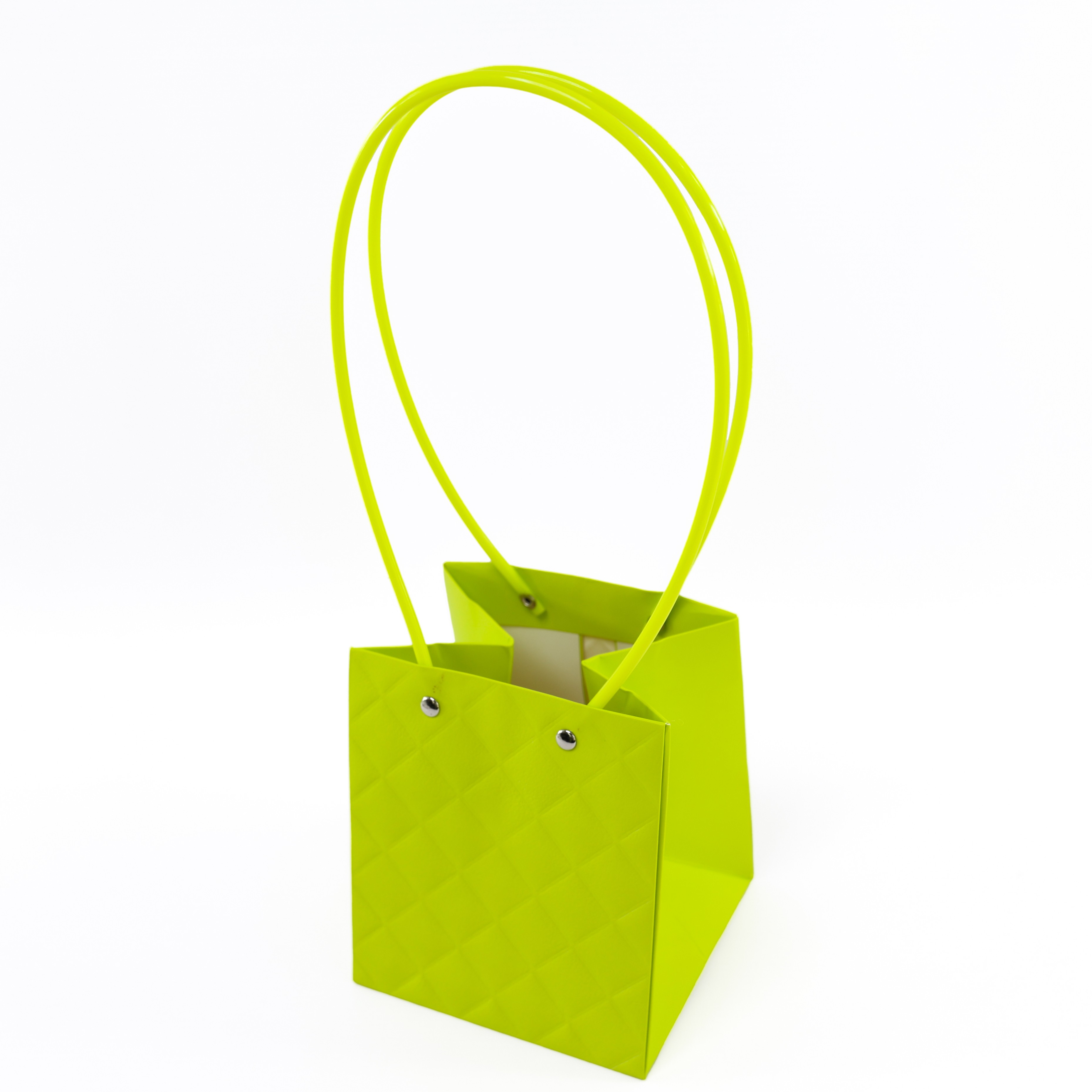 Wysokiej jakości torebka na kwiaty, z pięknymi przetłoczeniami. Z powodzeniem może zastąpić flower box. Można do niej wstawić bez zabezpieczenia kwiat doniczkowy, butelkę, prezent...