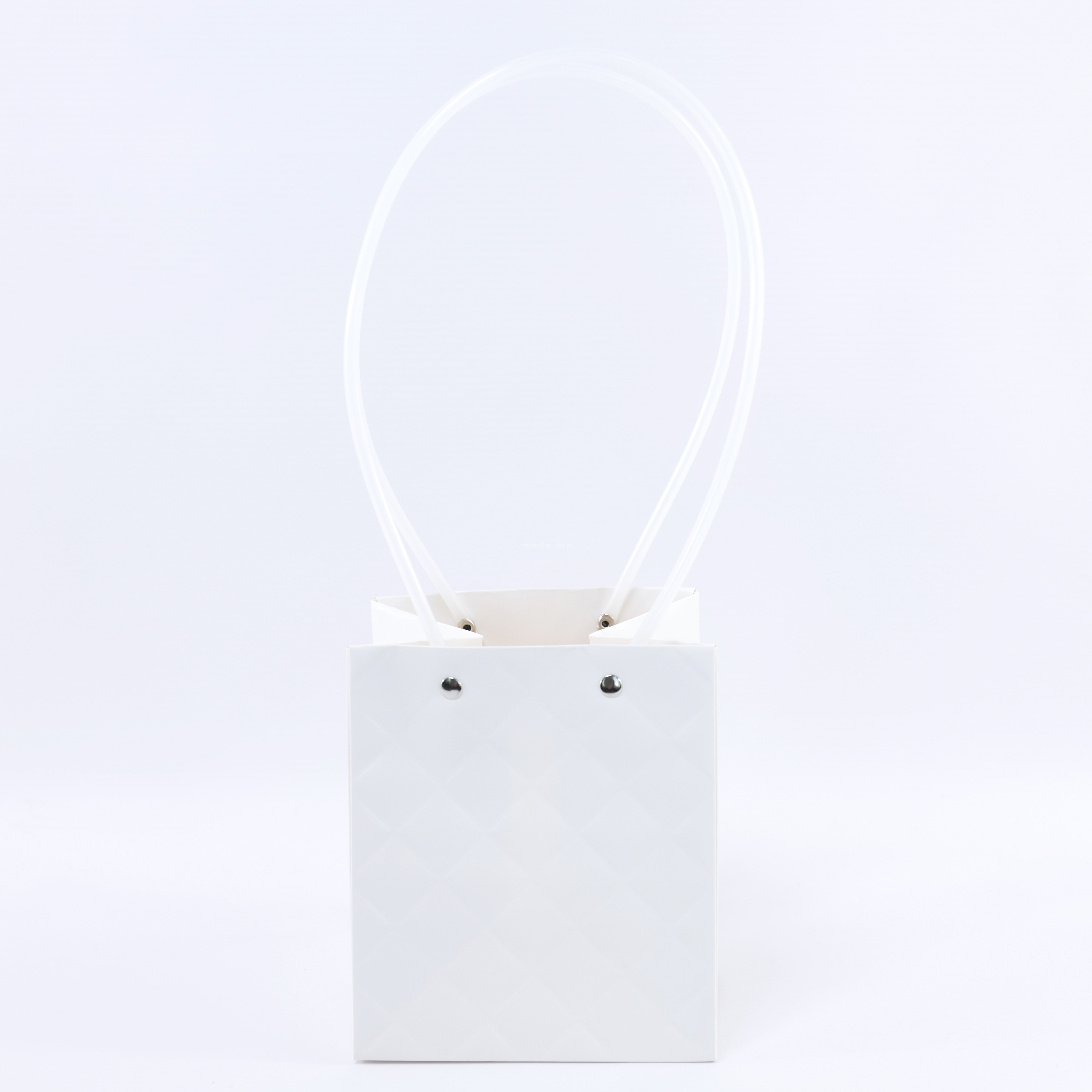Wysokiej jakości torebka na kwiaty, z pięknymi przetłoczeniami. Z powodzeniem może zastąpić flower box. Można do niej wstawić bez zabezpieczenia kwiat doniczkowy, butelkę, prezent...