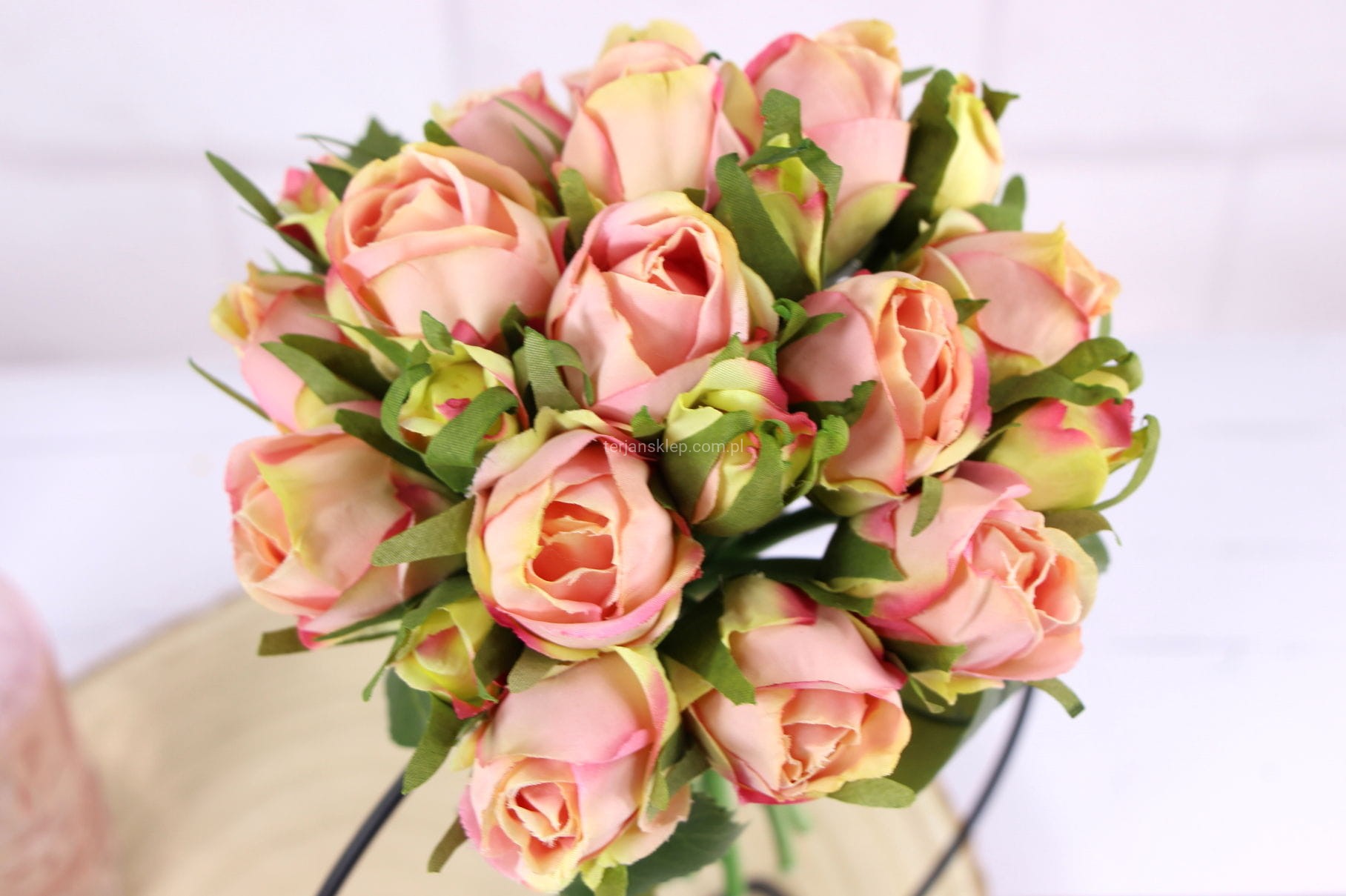 Urokliwa wiązka róż (21 sztuk). Kwiaty są przepiękne, jak żywe.
