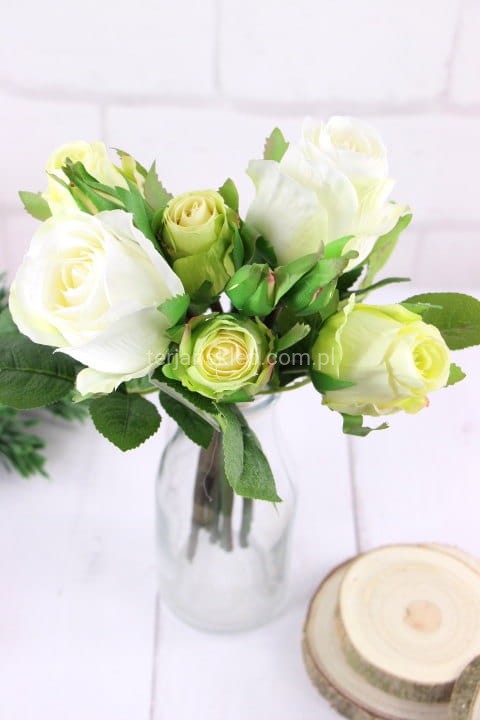 Urokliwa wiązka róż (9 sztuk). Kwiaty są przepiękne, jak żywe.