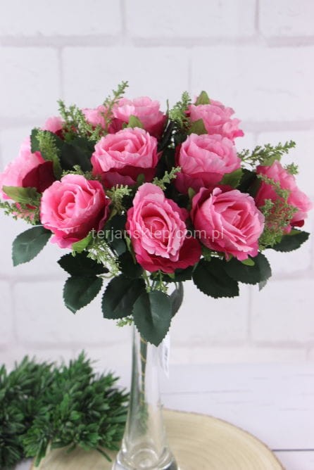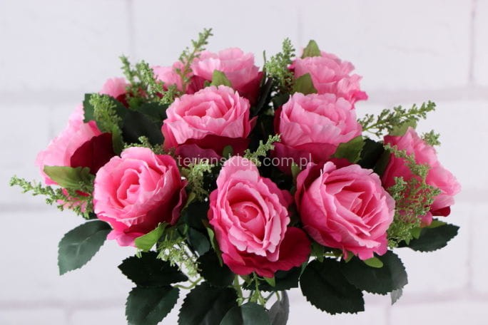 Piękne, gęste róże pojedyncze wykonane z satyny. W wiązce 12 sztuk.