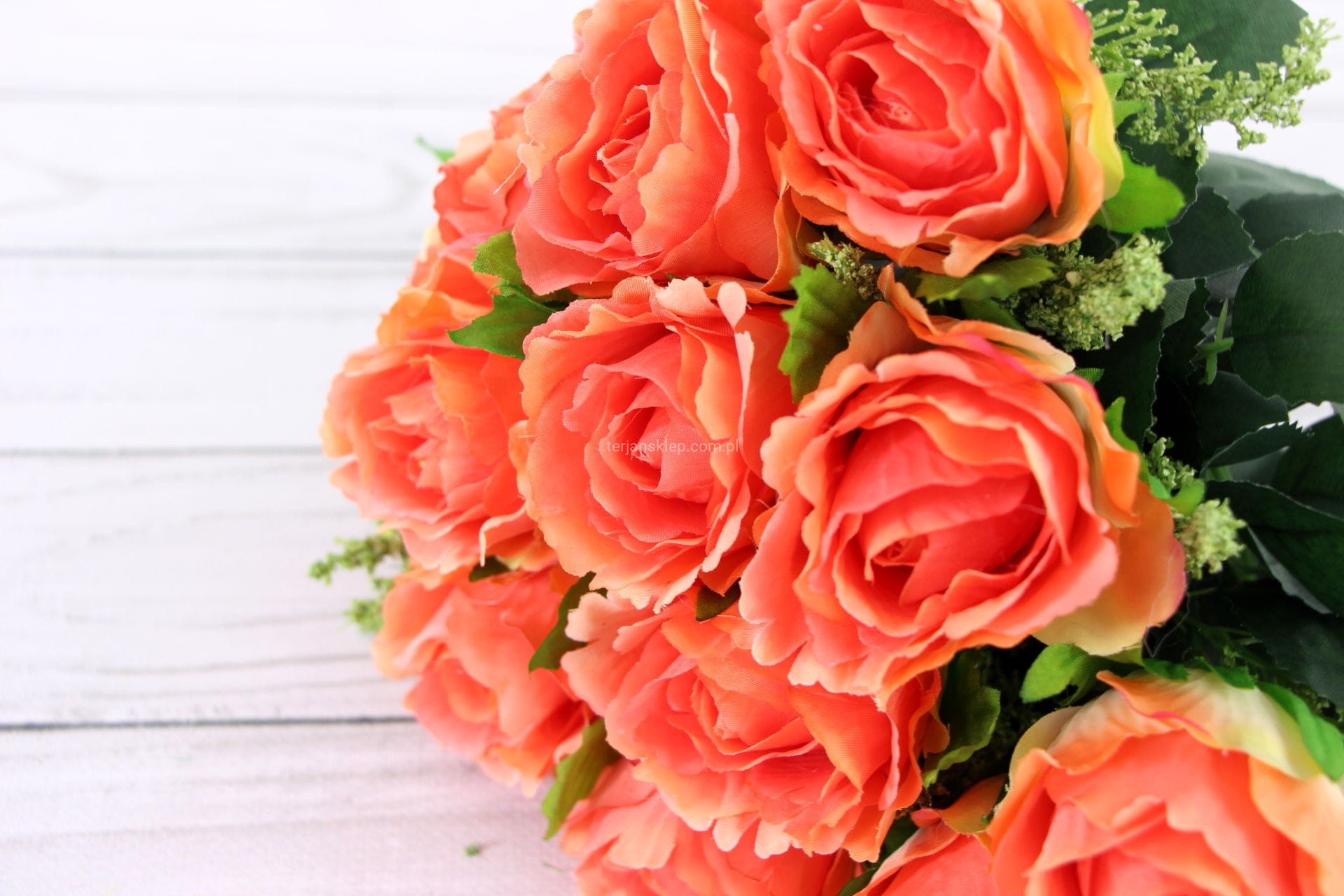 Piękne, gęste róże pojedyncze wykonane z satyny. W wiązce 12 sztuk.